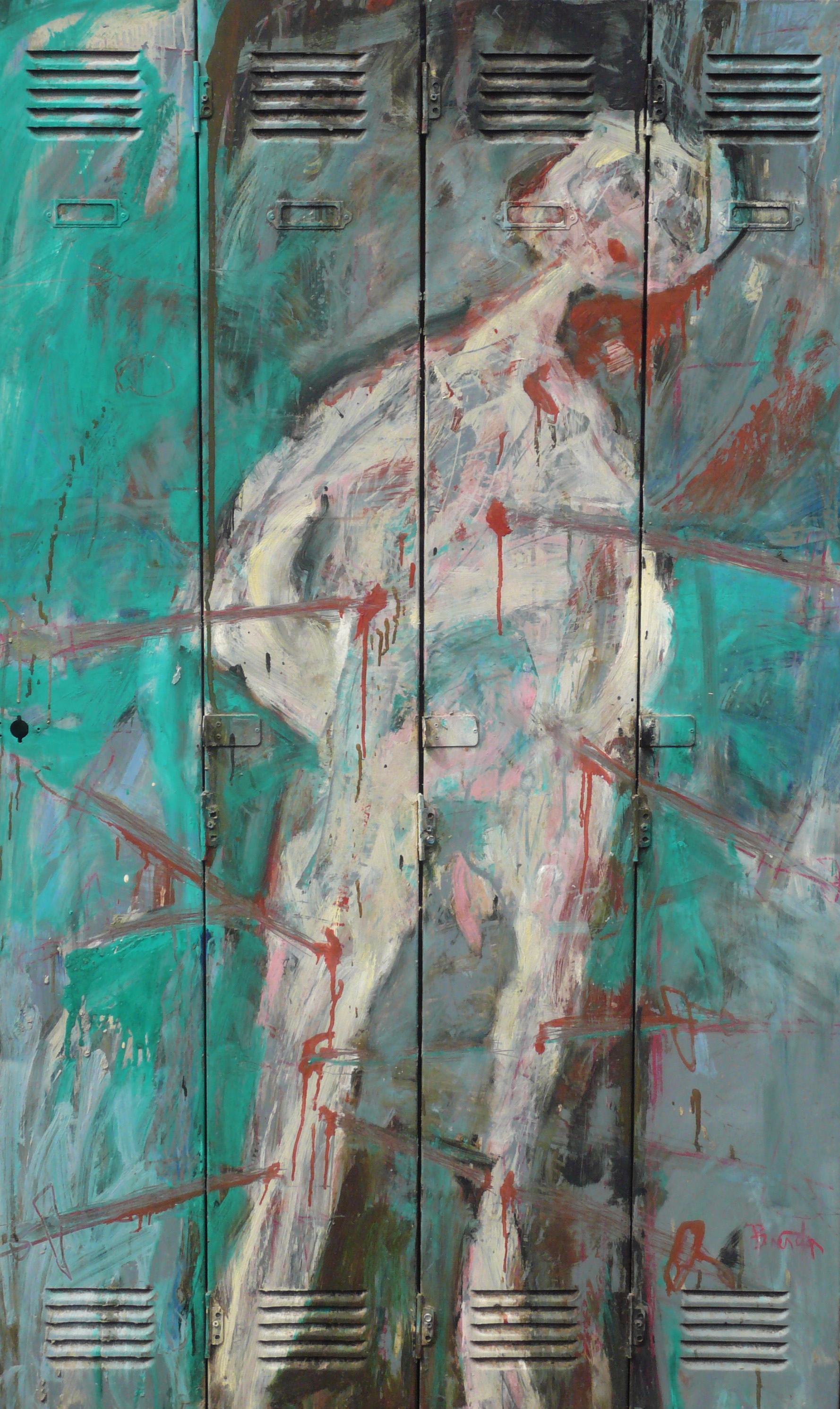 “ Saint Sebastian” 1997 oil on metal locker doors 1700 x 1000mm