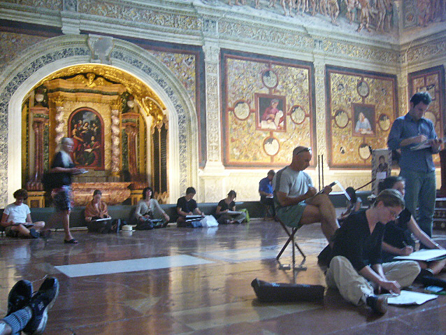 Traditional practice of drawing from frescos, every morning in Orvieto Duomo