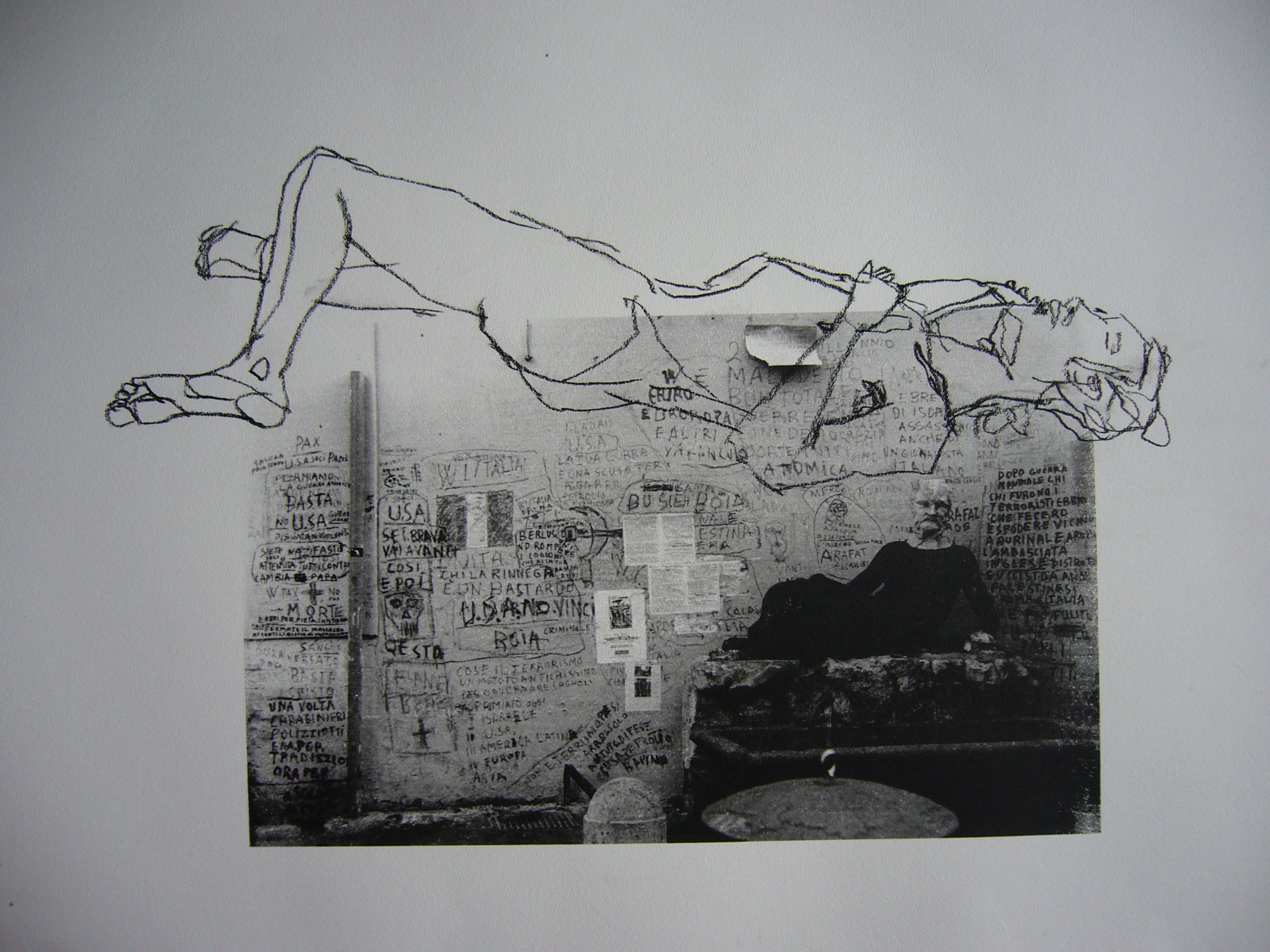 “Via Del Corso” charcoal and screen print on paper