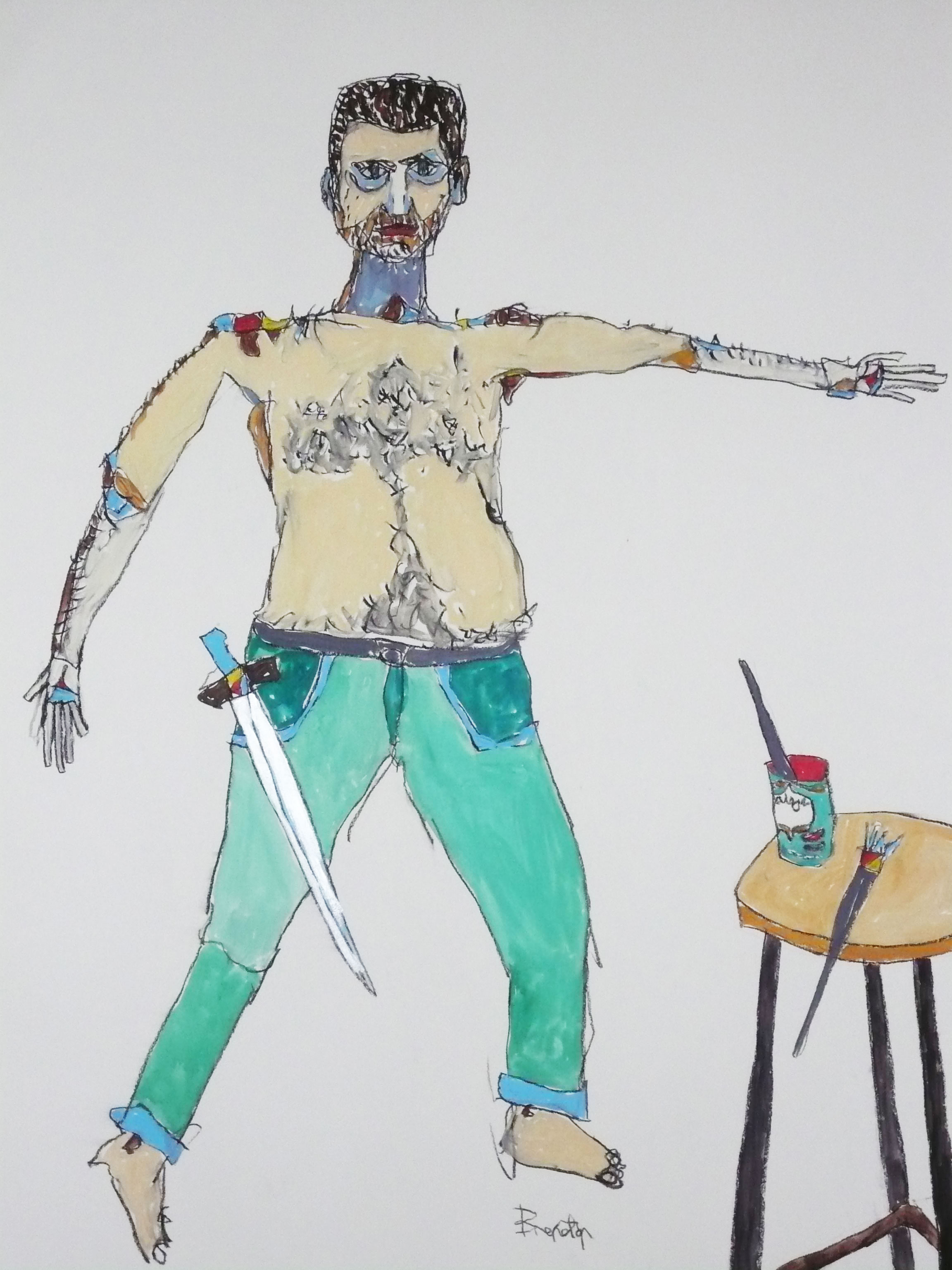 “Studio challenge” charcoal and watercolor on paper 610 x 860mm