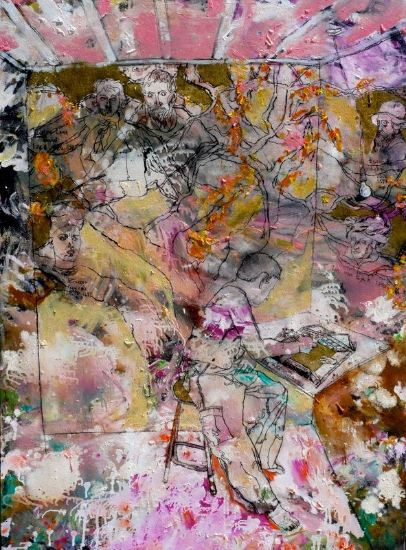 History is also important in the work of Brendan McGorry at the City Art Rooms in an exhibition called This is the New Sound just like the Old Sound. The central piece, This Annunciation, is a self-portrait of the artist at work on a drawing. Under the colourful ceiling of his studio are the ghosts of artists who have been his inspiration: Van Eyck, Gozzoli, Cellini, El Greco and Jacques-Louis David.
