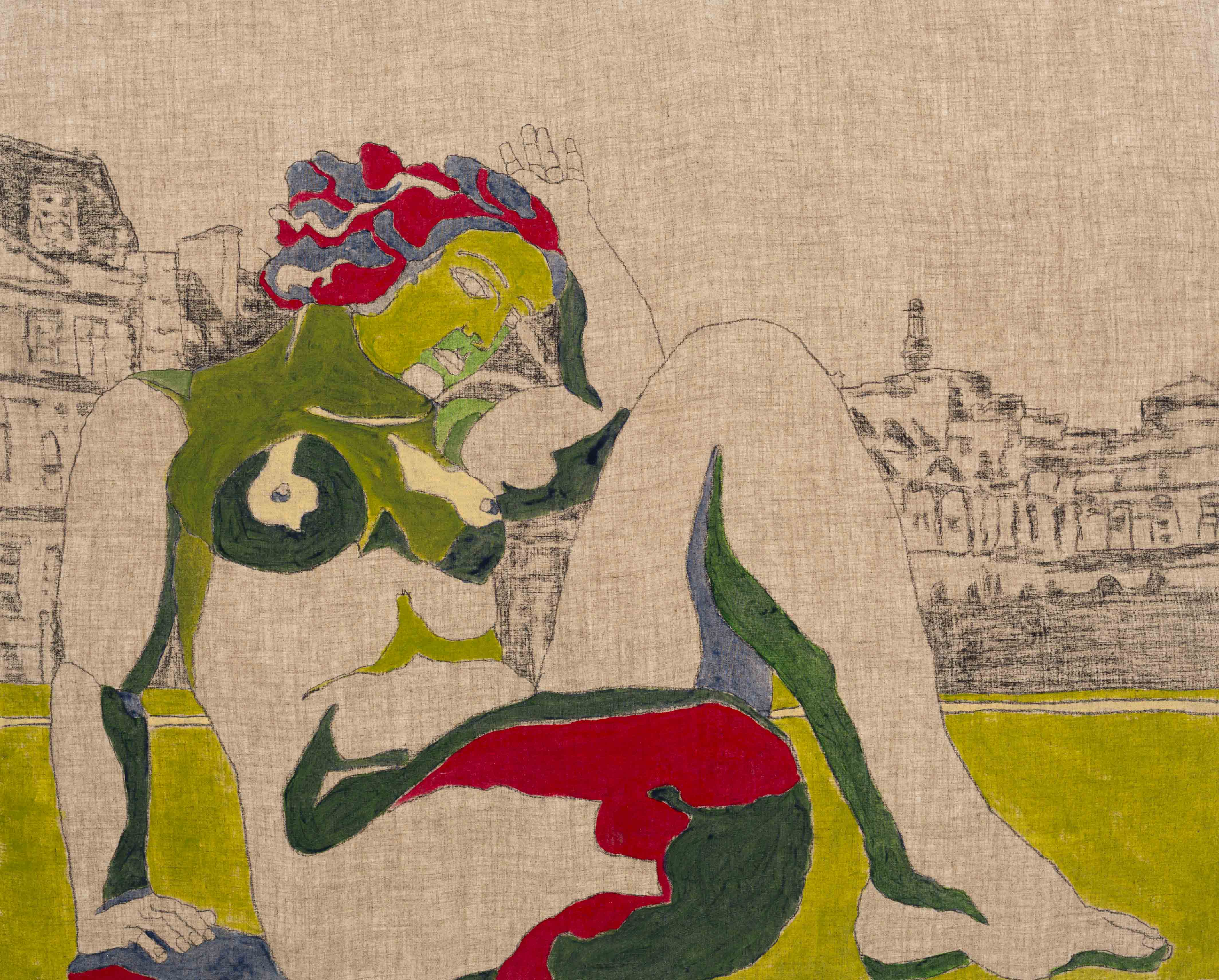 “The Pleasure Seekers 2” Acrylic and charcoal on linen 910 x 1220mm