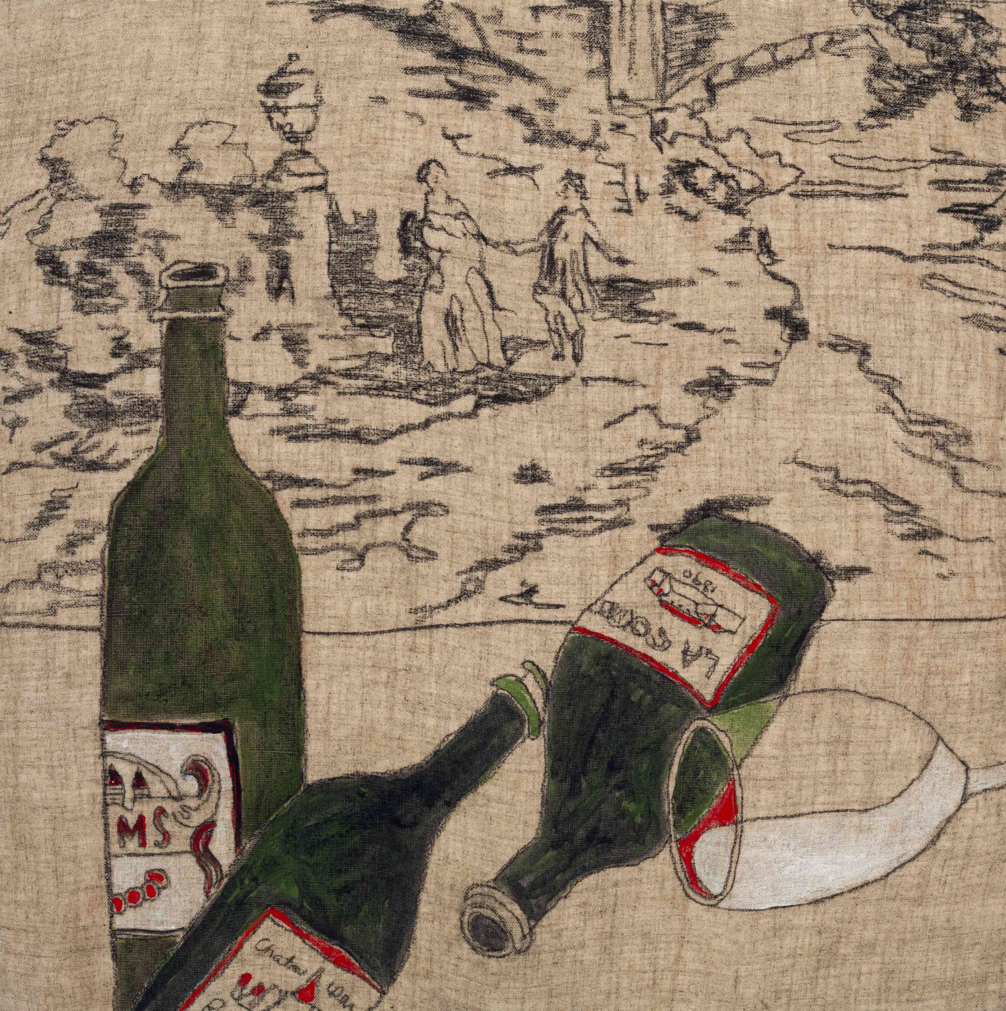 “Basil and Gin” Acrylic and charcoal on linen 230 x 300mm