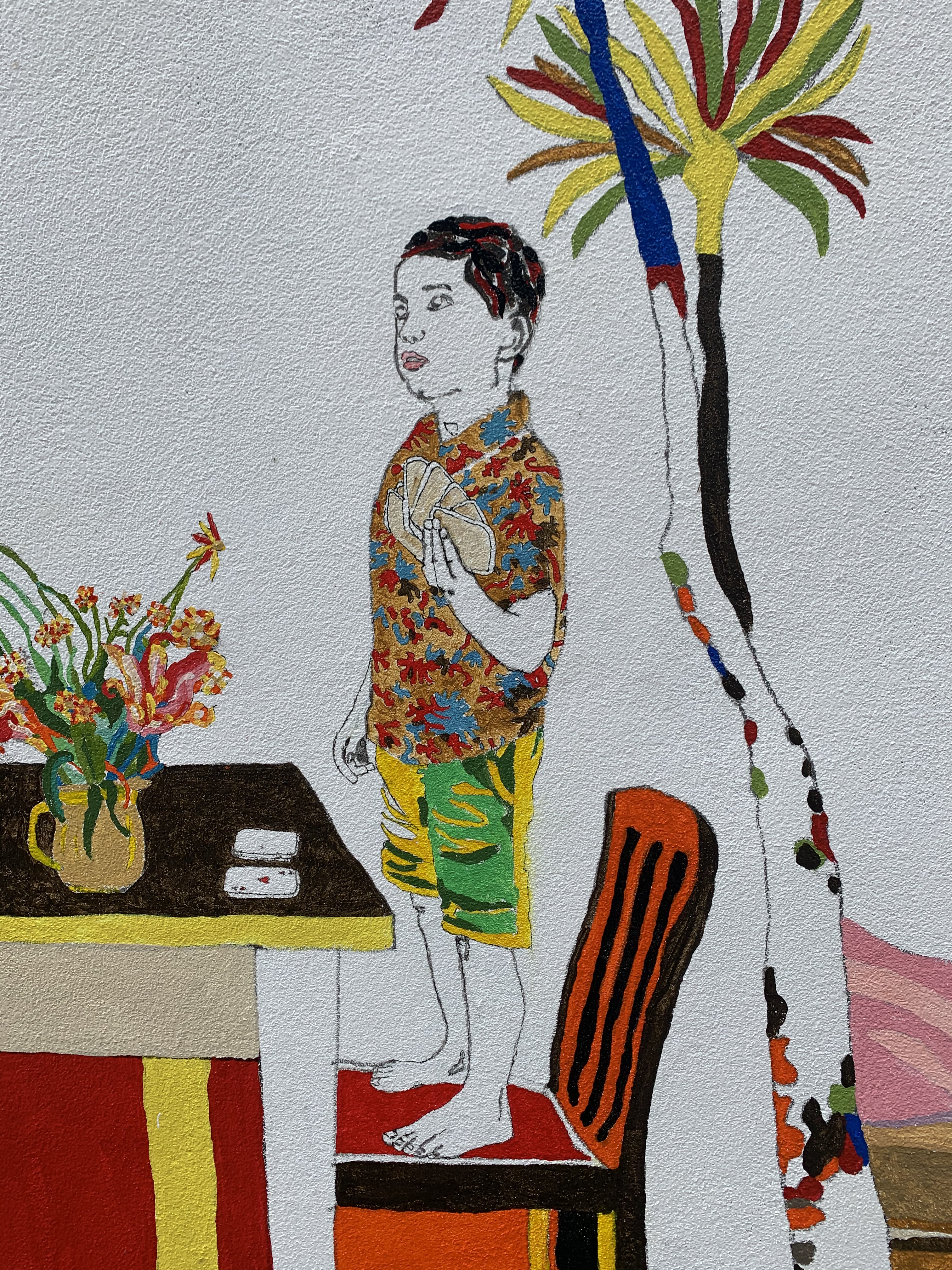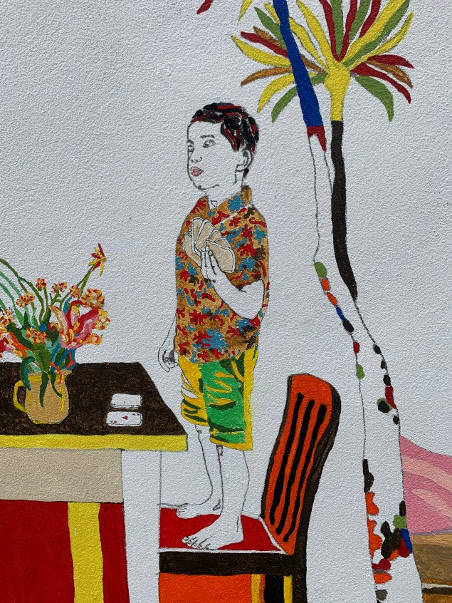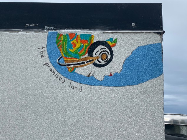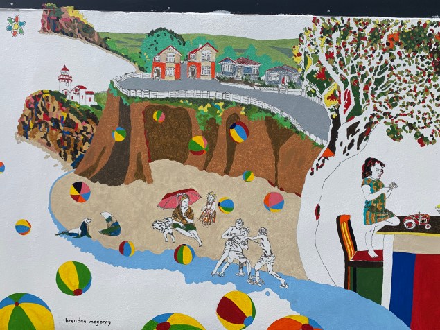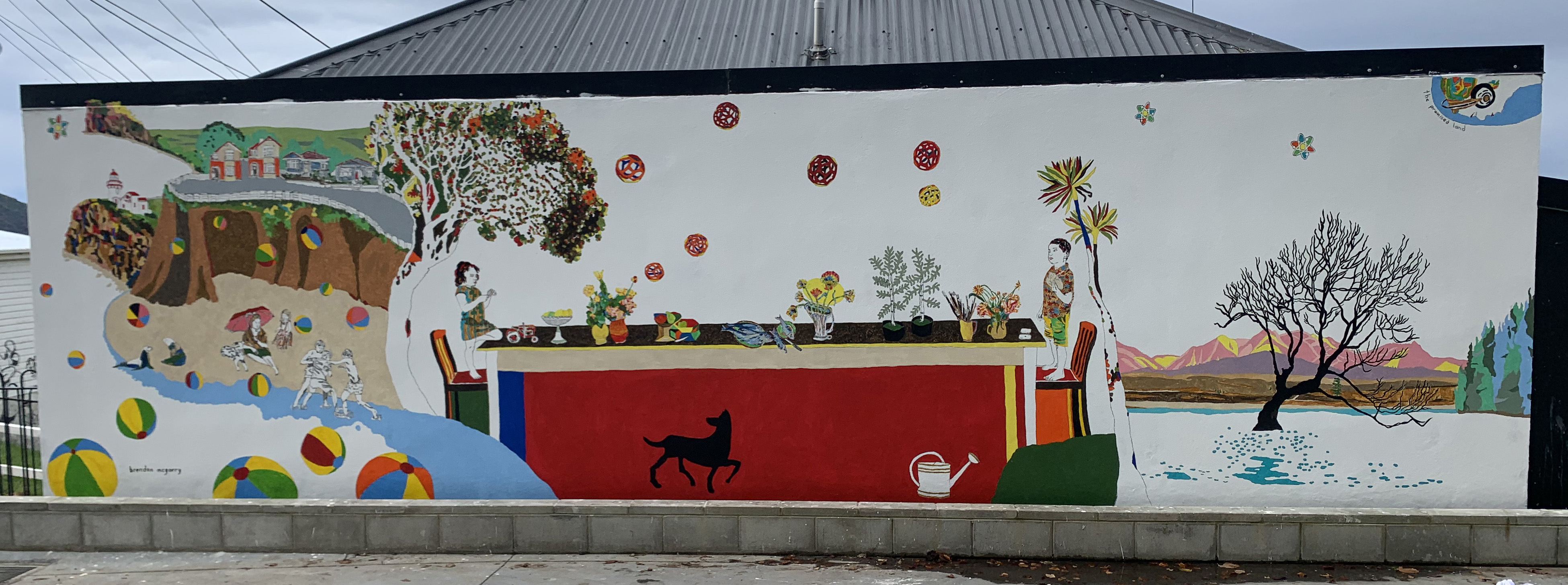 A new mural overlooking Dunedin City by Brendan McGorry that celebrates the culture and landscape of the Otago region through a re-shuffle and reimagining of iconic works from the Dunedin Public Art Gallery.