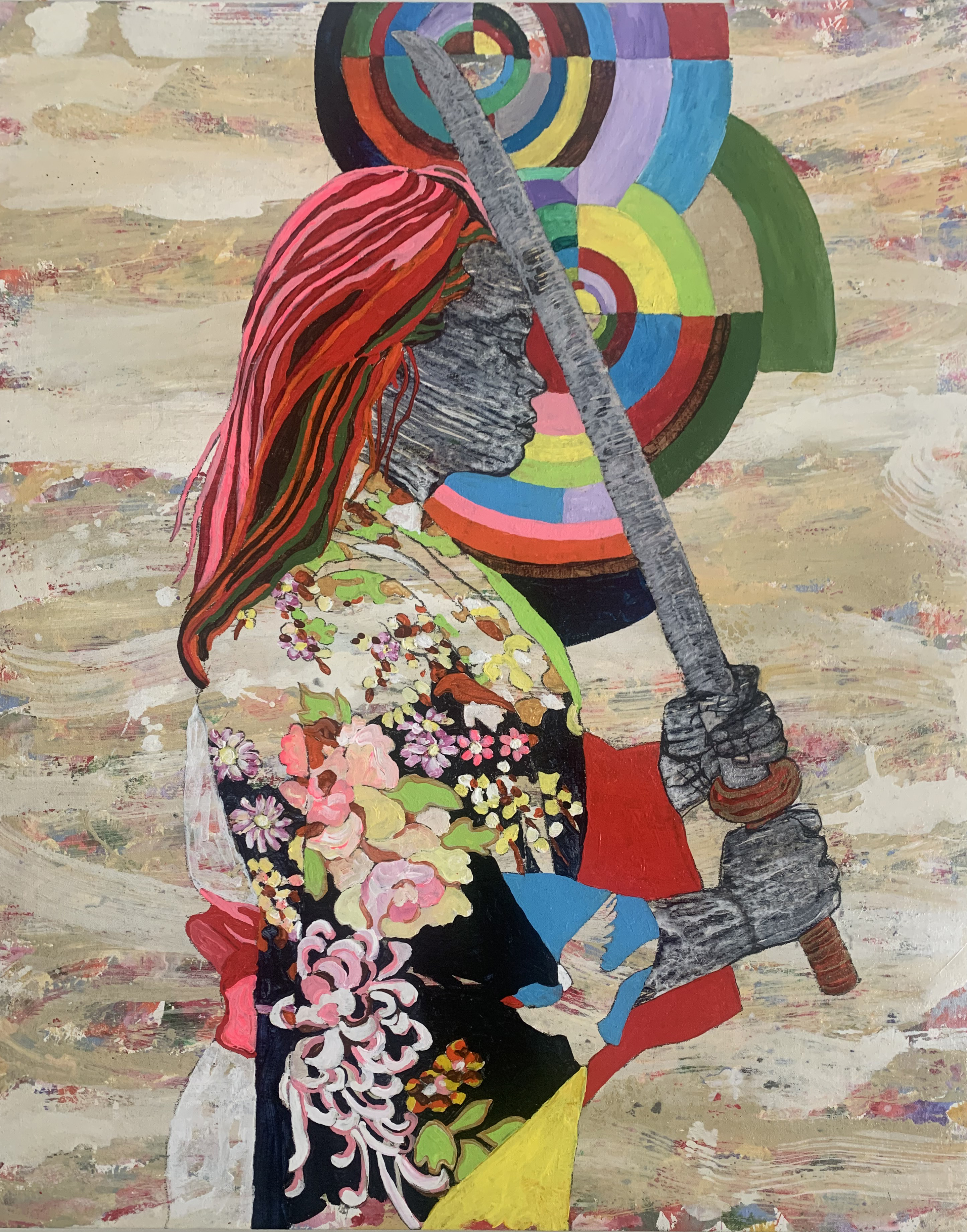 In Hero, Brendan McGorry bridges the gap between these two modes of incorporation. While there are stylistic elements reminiscent of Japonisme through the inclusion of Japanese accoutrements, the works take on their own meaning through the depiction of his grand- daughter Aaliya – who is portrayed as a warrior princess.