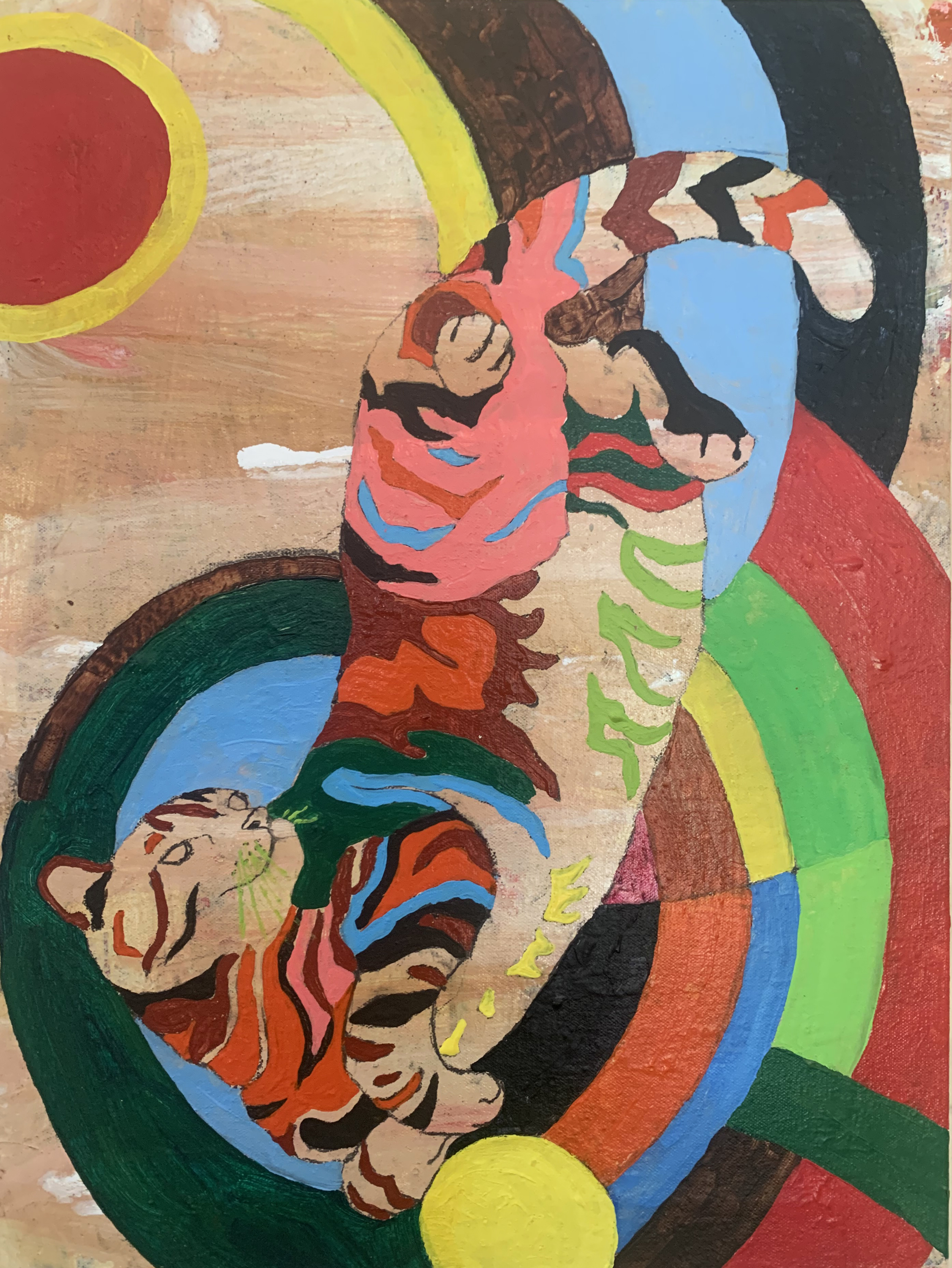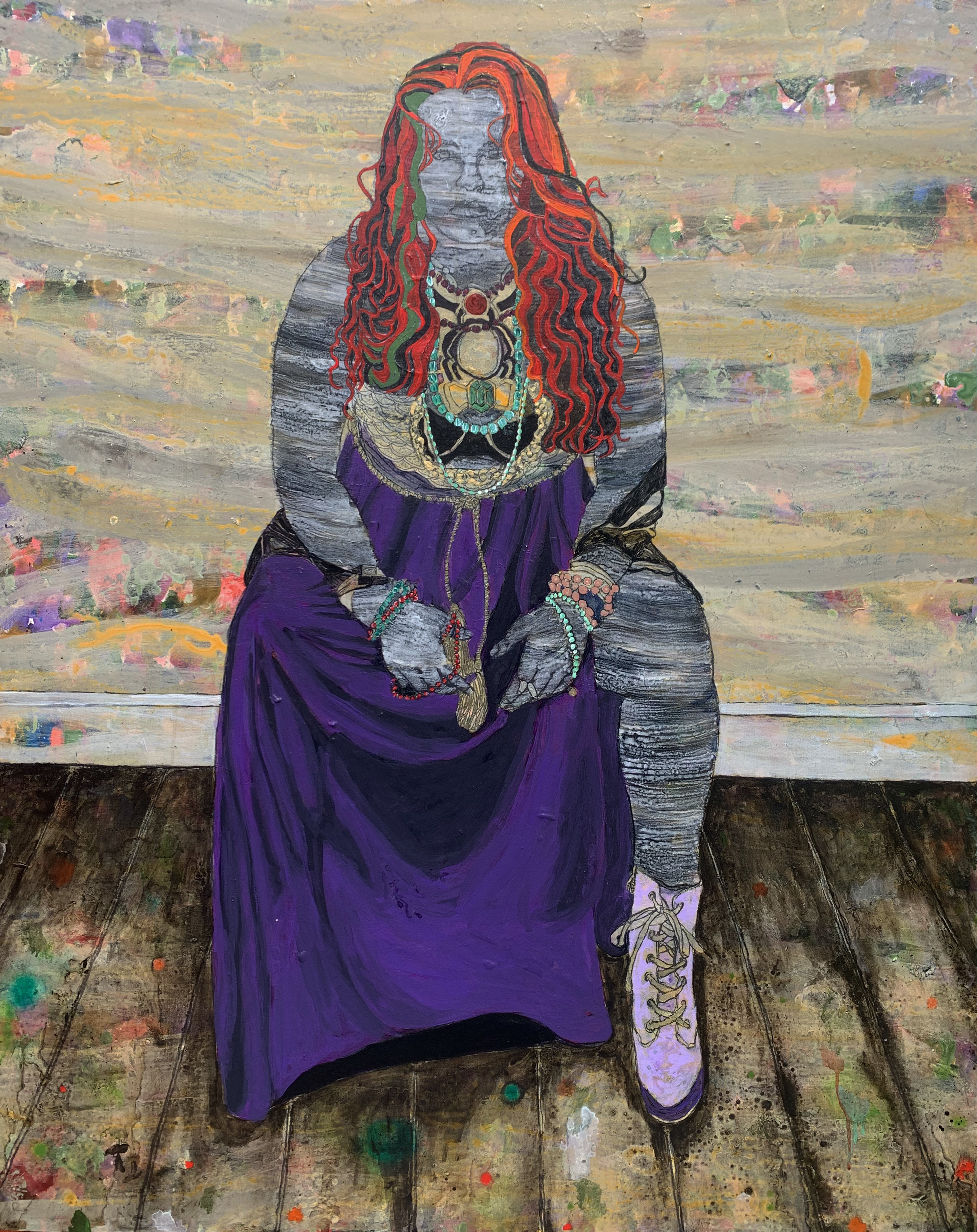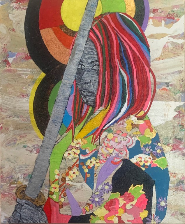 The Warrior Princess, 2023, acrylic & charcoal on canvas, 485 x 356mm